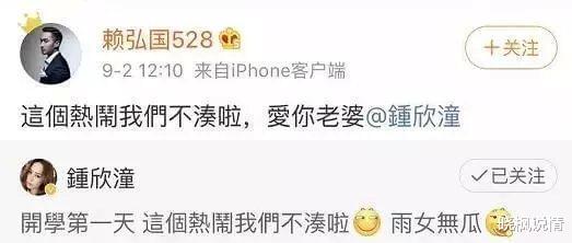 后来另一个短发女生,也晒出与赖弘国的合照。 女生叫他“老公”。 这不是女生第一次晒照。 更早之前,女生还发过一张更亲密的合照,照片里,赖弘国搂着她的肩膀。 配文是:“我结婚了。”