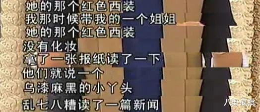 面试那天,她穿着一身红色的西装,没有化妆,随手找了一张报纸,朗读着,台里面试的老师说“一个乌漆嘛黑的小丫头,乱七八糟的读了一篇新闻”。