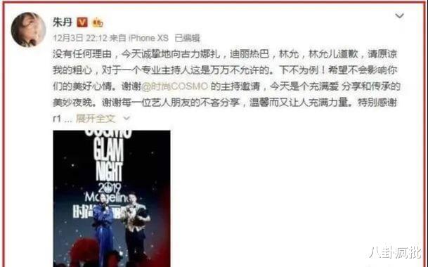 朱丹主持某个时尚活动时,古力娜扎和迪丽热巴“傻傻”分不清楚,把林允叫成林允儿,冲着周笔畅喊“丑笔畅”,三次叫错马思纯的名字……