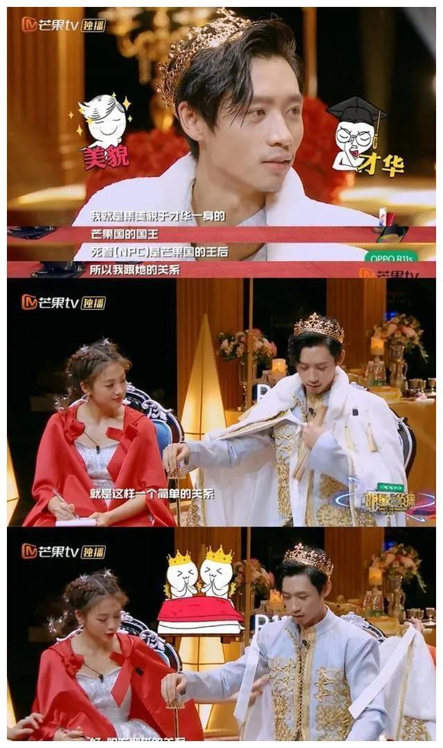 这时何老师表示很仰慕他的王后。魏晨则说道“帮我换一顶帽子吧,换绿色的就行了”也是惹得所有人都大笑不止。而节目中魏大勋扮演的公主,穿着公主裙戴着假发,画着浓妆时,画面有点辣眼,魏大勋对着魏晨说“你有我一个小公主还不够吗?”魏晨直接接道说“我不是够了,我是够够的了。”