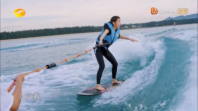 后来彭昱畅又喊了一句“你回头看”,妹妹也是不假思索的立刻回头,但这次被哥哥坑了,回头看了一眼海面破坏了张子枫的平衡,从滑板上掉了下来。虽然滑水结束的不完美,但张子枫彭昱畅两个人互相信任,互相配合的感觉真好!