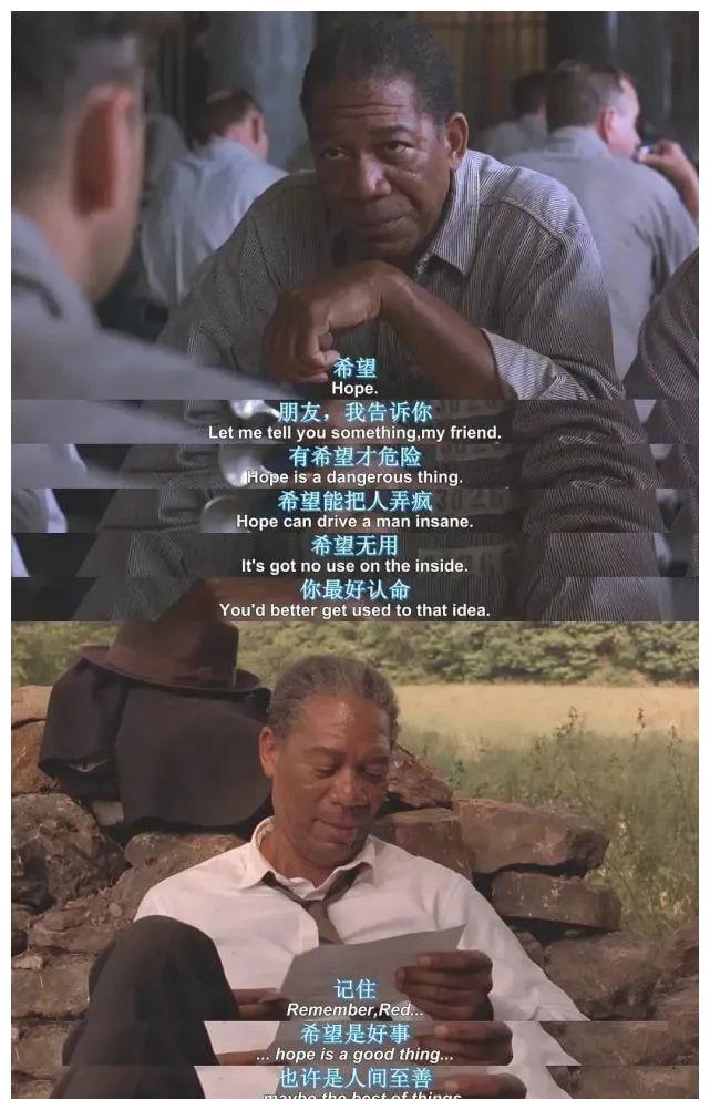 在影片里有很多值得大家回味的地方,像那句经典的台词“有的人羽翼是如此光辉,即使世界上最黑暗的牢狱,也无法长久地将它围困”还有许多台词和情节,让人能感悟到人生的真谛。除此之外影片刻画的主题是“希望”、“自由”,当我们面临恐惧和困难时,要学会运用自己的智慧,相信希望、相信自己,勇敢的去打败它。