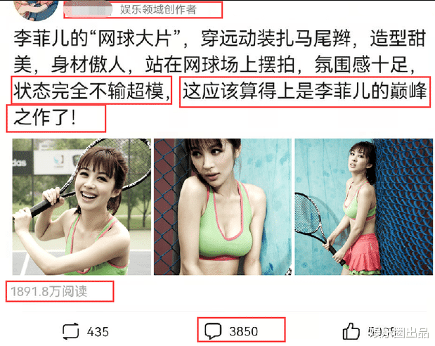这组“网球写真”再次曝光后,直接拥有将近两千万的阅读,看来不少人都被吸引到了。照片中的李菲儿身穿一款运动服装,扎着马尾辫,甜美的造型,傲人的身材,全被展现得一览无余。她站在网球场中进行摆拍,氛围感很强,可以说她的身材,绝对可以当模特了。如果她不是明星的话,肯定会被误当作来看待。