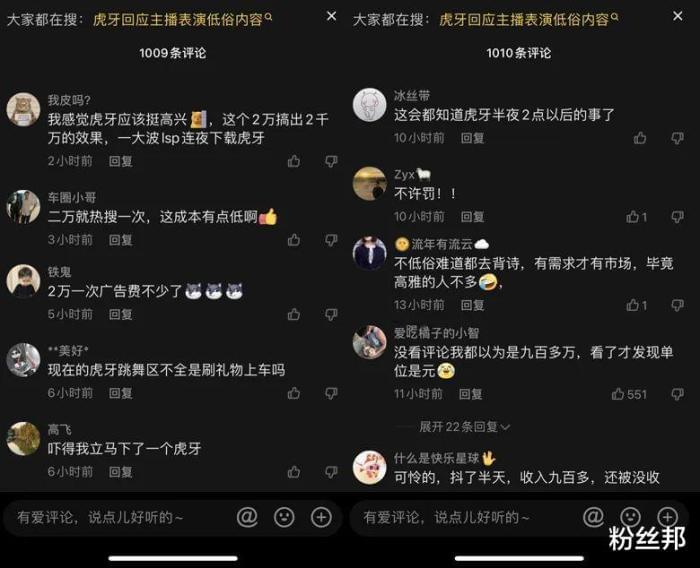 有网友调侃某牙直播被罚2万元,因为2万元热搜成本太低。现在全网网友都默默写下来了“某牙直播”,只等夜深人静的时候悄悄下载入驻,深夜档直播的主播们,估计会迎来一波流量?