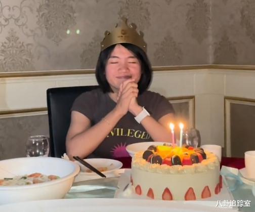 视频中,李勒优面前摆放着一个巨大的生日蛋糕,蛋糕上摆满了水果,应该价格不菲。除此之外,摆满了菜品,十分丰盛。