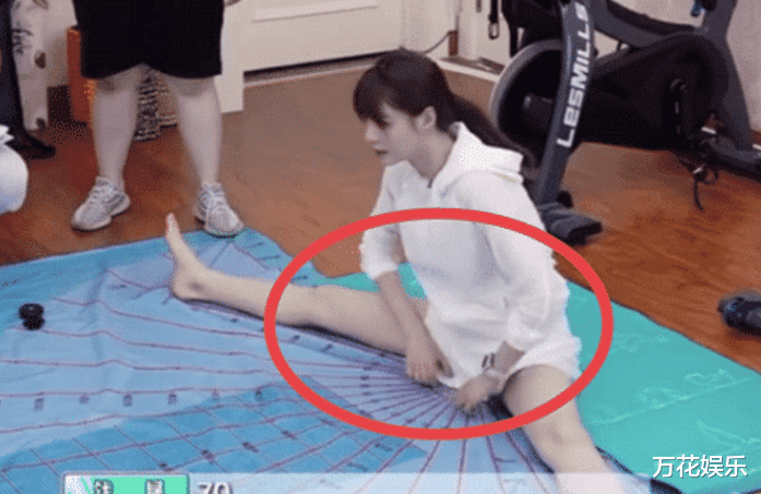 但是恰巧哪天沈梦辰穿的是3分裤非常的短,也不知道是她自己没注意,还是为了吸引焦点,便穿着这样的裤子劈叉了,但是动作做出之后,沈梦辰自知可能要曝光,因此便捂住自己腿部,结果想捂都捂不住,多少还是有点暴露了。