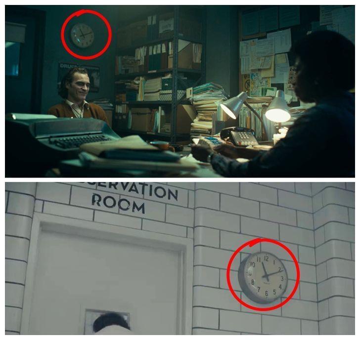 所有时钟都诡异地设置为11:11,如果不是因为每次都是巧合,那就是这些钟根本就没走过,对此,有观众猜测:这是暗示时间静止了,整个故事其实都是主人公臆想出来的,而且片尾出现小丑面对心理医生的画面,也印证了这一点。《海王》