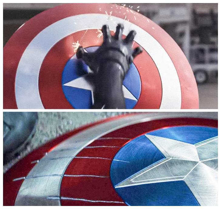 美国队长的振金盾牌几乎坚不可摧,但是在与黑豹战斗时,盾牌上却留下了很深的划痕,这些特写镜头想要告诉观众,黑豹可以损坏美队的振金盾牌,原因是他其实也装备了振金。《X战警:黑凤凰》