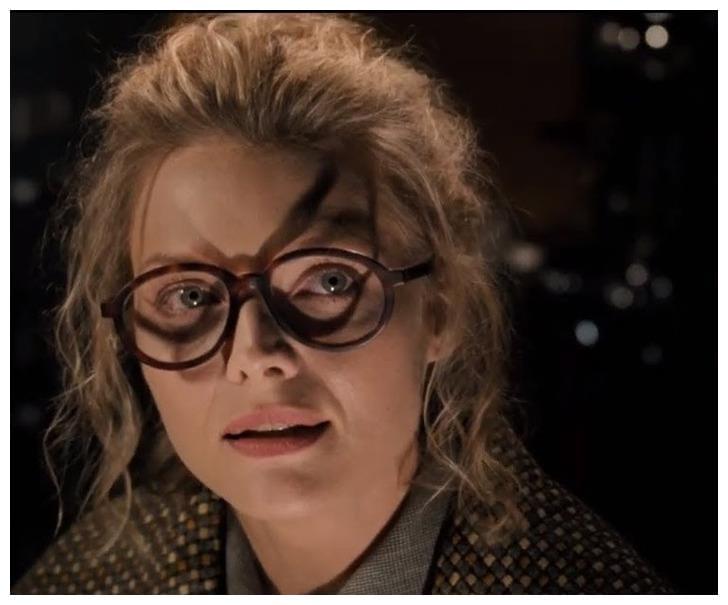 在一个场景中,赛琳娜的眼镜产生了一个看起来像面具的影子,这个地方就暴露了她的真实身份就是猫女。《无耻混蛋》