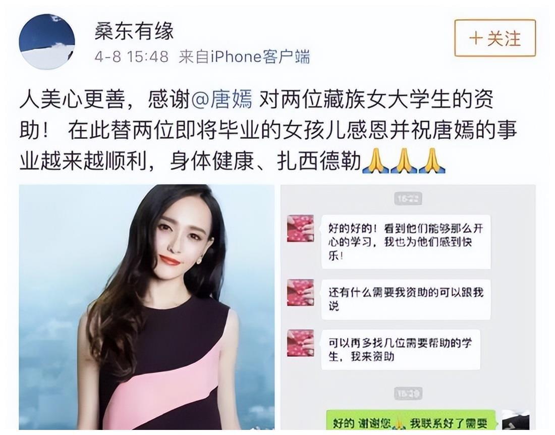 好巧不巧,就在杨幂因为诈捐门被喷成筛子忙得焦头烂额的时候,一则好闺蜜唐嫣匿名资助两位藏族大学生的旧消息卷土重来。