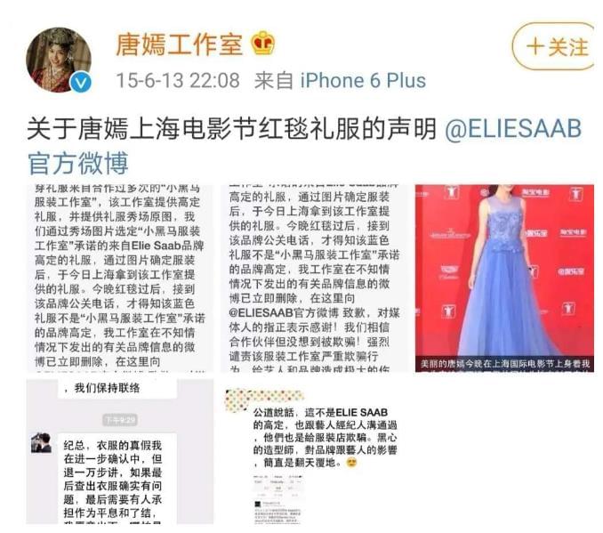 而ElieSaab的官方也忍无可忍,连发三条动态撇清跟唐嫣的关系,前有时尚博主打假,后有官方亲自开撕。