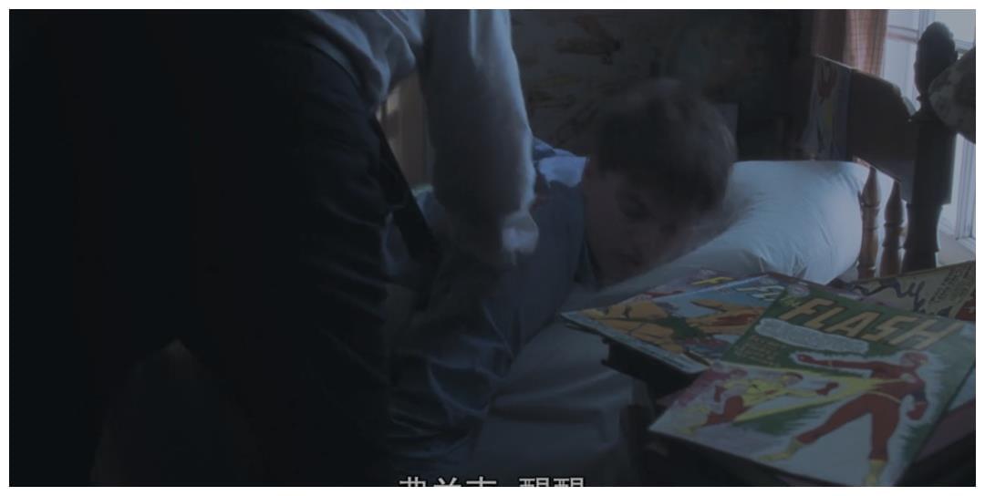 剧情的发展与情感的递进浑然天成,《猫鼠游戏》实在令人惊叹。当然,看《猫鼠游戏》,还会体验到斯皮尔伯格高超的“埋伏笔”水平。比如电影开头,父亲叫弗兰克起床的镜头里,弗兰克床头摆着的漫画《闪电侠》一闪而过。