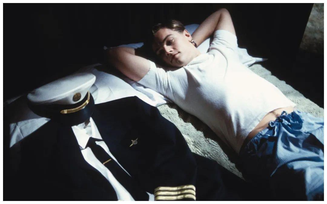 对父亲万般信赖的弗兰克很显然,一个长不大的孩子的形象,其实远比天才诈骗犯更立体更动人,电影中小李子饰演的弗兰克也因此更加鲜活,更惹人怜爱。为了诠释好这样一个聪明又脆弱的角色,莱昂纳多曾经拿着笔记本和录音笔跟着弗兰克满屋子转,不断向他提问来丰满角色,他甚至为了演出少年的清瘦感而减重近30斤。