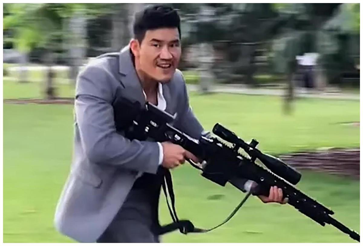 在这一片段中,谢孟伟身着西装,手拿狙击枪奔跑在小树林中。可原本作为一段霸气的出场戏,却因谢孟伟的动作过于僵硬,再加上伸着脖子,硬生生演出了一副猥琐的模样。于是遭到广大网友的调侃,像是农村偷狗贼,甚至还有人说像是日本鬼子。