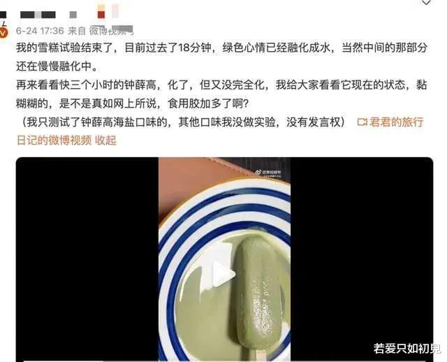 雪糕在31℃的室温下放置近1小时后,仍然没有完全融化 (图源:网传截图 极目新闻)