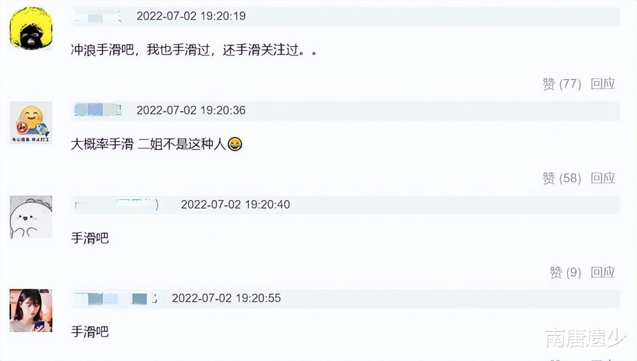 这一举动在“浪姐小组”掀起一波热议,有人发帖认为她是在“蹭热度”、“想黑红”,更多人则觉得是手滑,纯属无心之失。