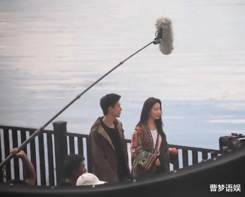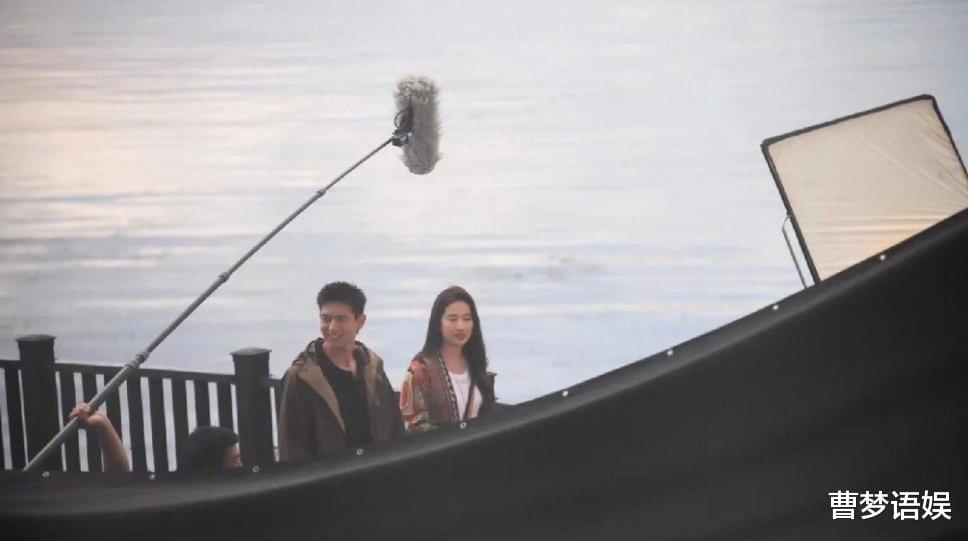 随着剧情推进,刘亦菲和李现似乎和好如初,两人也一起站在江边对话,共同憧憬着未来。这一段戏应该是给了特写,从工作人员高举的收音话筒来看,两位科班出身的专业演员都是现场原音收声,这给剧组着实省却了不少麻烦。