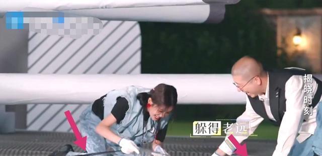 白鹿为了拽绳子被杆子击倒了,而李诞却在哈哈大笑,白鹿焦急的说:“你绳子都没直,你近一点”!