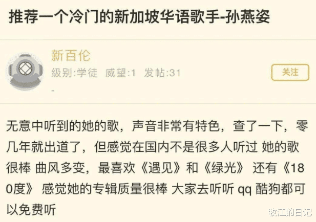 曾经有人在网络上说孙燕姿是冷门歌手,那可真是笑掉大牙了,对于很多8090后的人来说,孙燕姿的歌那是陪伴了童年和青春时期啊。