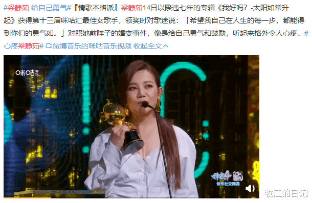 故事的发展本来应该更好的,只是婚后多年的梁静茹遭遇情变,离婚后的梁静茹再唱这首《勇气》就成了唱给自己听的了。