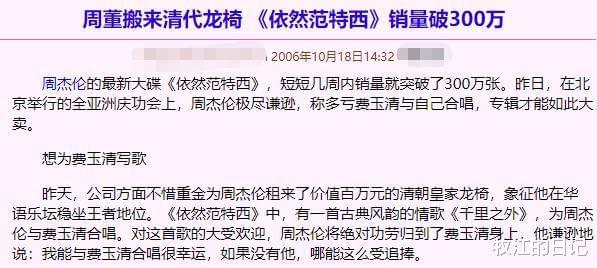 《千里之外》所属专辑《依然范特西》,在台湾销量18万输给蔡依林,但在全亚洲这张专辑是突破了300万,更是获得了香港唱片销量大奖的最高销量奖,完全折服在周董当年的成绩里了!