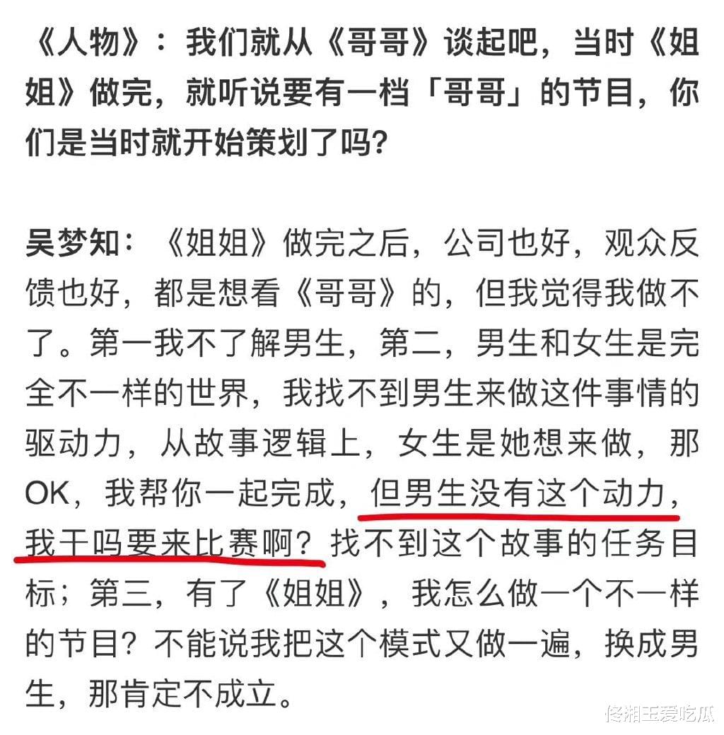 今日,《乘风破浪的姐姐》的导演吴梦知注销了微博,注销前在微博发了一篇长文,大概意思是说《浪姐》的资源被《披荆斩棘的哥哥》抢占,末尾感叹了一波就注销了。不少网友都表示非常不解,为何综艺节目也开始重男轻女了?今天咱们好好来聊聊。