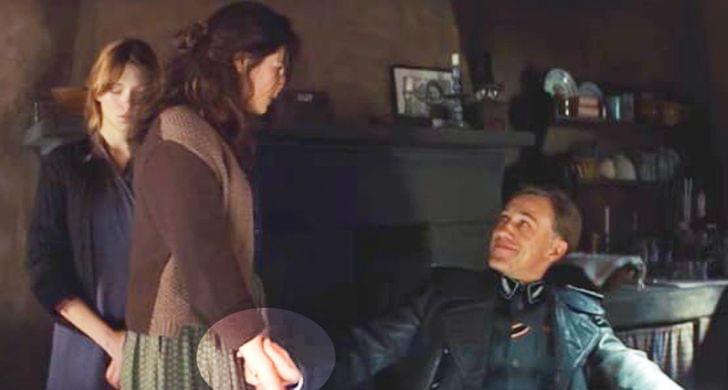 汉斯·兰达饰演的纳粹党卫军队长,是一个上一秒可以谈笑风生,下一秒就能痛下杀手的魔头,他在向农妇提问时,态度和蔼,笑容可掬,只是轻轻地摸了摸她的手腕,实际上他在摸她的脉搏,以确认她没有撒谎。