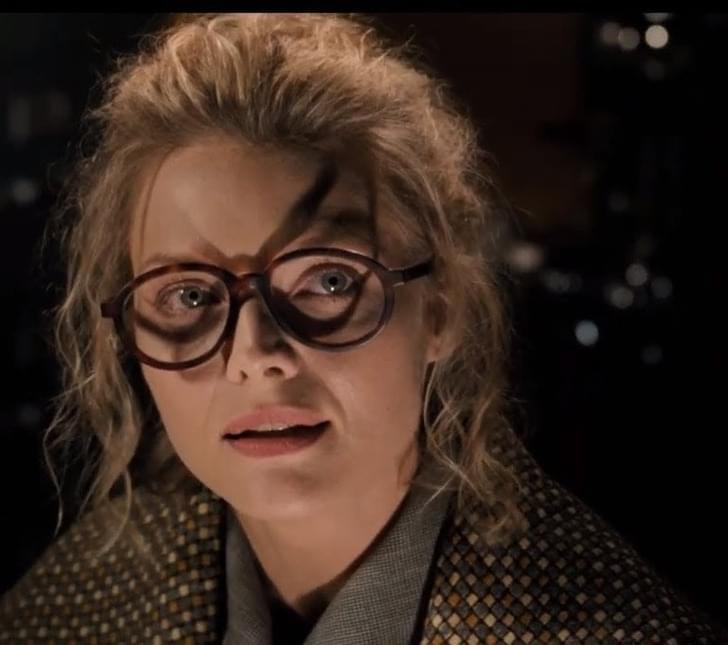 在一个场景中,赛琳娜的眼镜产生了一个看起来像面具的影子,这个地方就暴露了她的真实身份就是猫女。