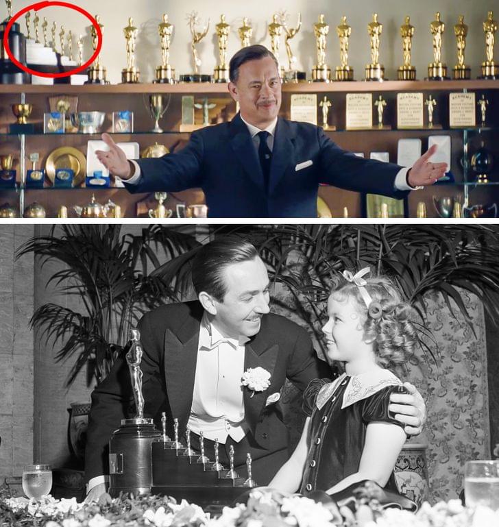 这是一部关于沃尔特·迪斯的传记电影,你可以看见主演汤姆·汉克斯的身后有7座小金人,这就是沃尔特·迪斯尼凭借《白雪公主和七个小矮人》获得的特别奥斯卡奖。