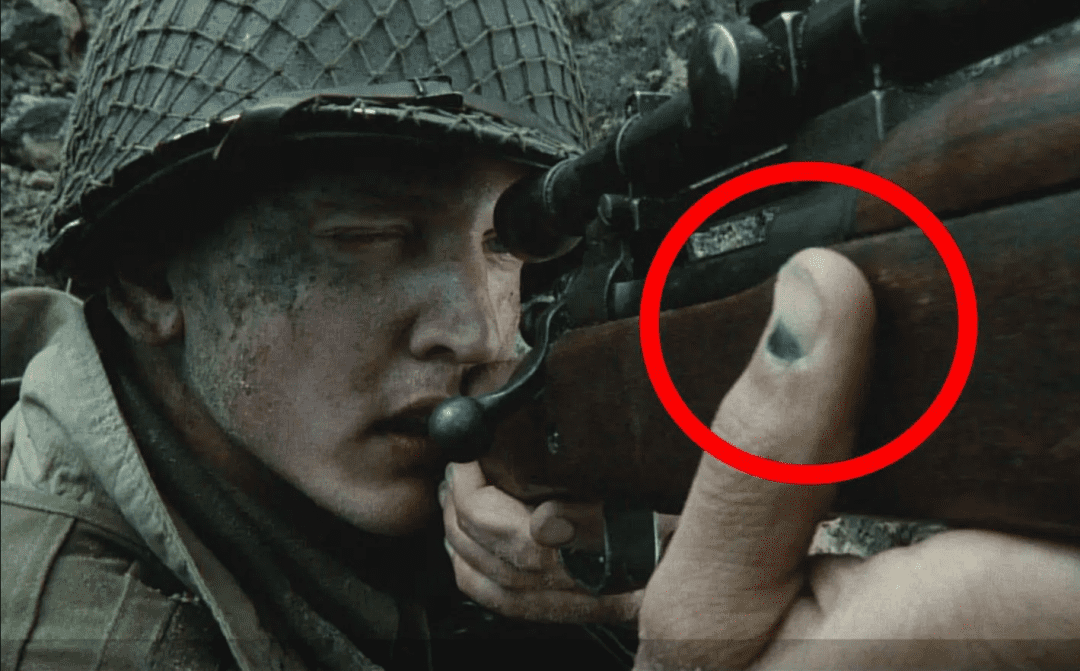 狙击手的指甲盖上有一块淤伤,这是因为加兰德步枪在装弹时,需要手指压一下再关闭弹仓,很多士兵会不小心卡到手指,也被称为“加兰德手指”。