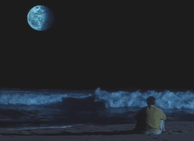 又比如海滩场景,一道闪电把月亮照亮了一秒钟,虽然看惯了这一现象的楚门对此毫无察觉,但是细心的观众就能看出,这个“月亮”应该在天空中很近的位置,因此它并不是真的。