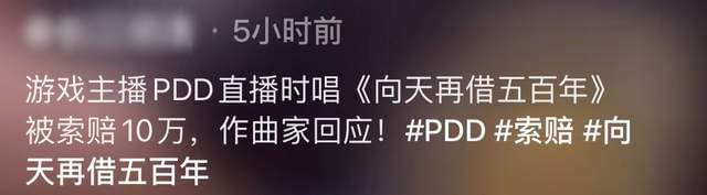 PDD称《向天再借五百年》的原唱韩磊老师是非常厉害的前辈,作词作曲家也是特别严谨的人,他们也许不想这首歌被随意亵渎,所以才起诉了翻唱者。