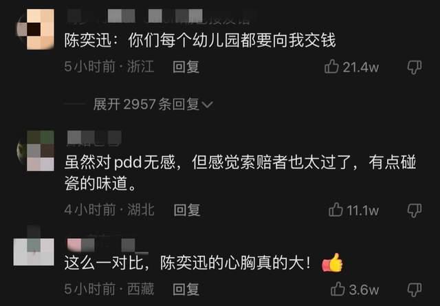 从张宏光老师回应态度来看,他似乎并没有放弃起诉PDD的念头。网友们看到他的回应后,在评论区里纷纷调侃每个幼儿园都要向陈奕迅交钱。