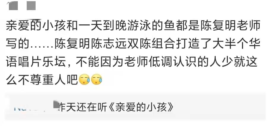 获得该奖项的是邱晨和陈复明,有网友称,陈复明老师和陈志远老师打造了大半个华语唱片乐坛,是前辈中的前辈。
