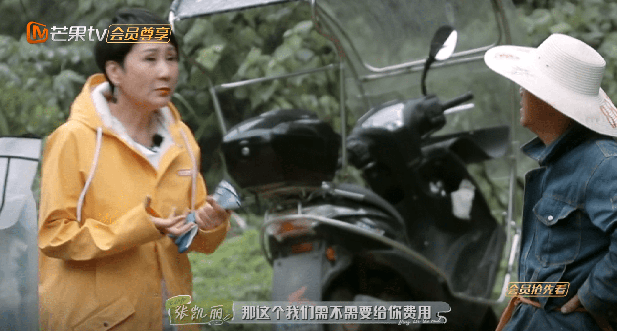 节目中,采笋结束后,张凯丽问村民要不要给钱。村民说,不用,合个影就可以了。但韩东君和杨幂都表示这是两码事,钱还是要给的。于是张凯丽说:100以内可以吗?并最终给了99块,但杨幂觉得99有点多,丁程鑫也认为99的笋有点贵。 张凯丽上车后说:行吧,就这样。杨幂试图表达自己的意见,说:姐,笋不值99。凯丽则认为人家也挺不容易的,并表示:就这样。可能她也觉得自己有点一意孤行,又解释说:我说猛了?9是我的幸运数字我就没多想。杨幂本来都说了个“但”,不过估计想到已经答应人家了,也不可能反悔,就改口说:好吧。