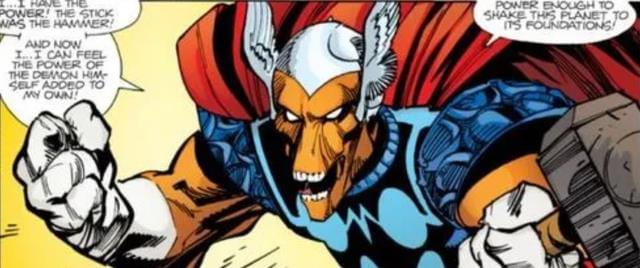 而在这一时期雷神的设定中还保留着「只要雷神之锤脱离雷神之手一段时间,雷神就会脱离雷神之力的状态」的设定,而在和当时还是叫「比尔」的马面雷神对战中,雷神托尔被击败了!