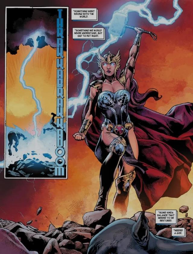 曾经因为大事件“善恶轴心”的缘故,宇宙中的所有正邪属性对调,在这一大事件系列的第9卷剧情里,“正义化”的洛基最终怼上了“邪恶版”的雷神,也或许是正邪对调的缘故,洛基原本纯粹的邪恶属性被转化为了纯粹的正义善良,因此,直接获取了雷神之锤的认可。
