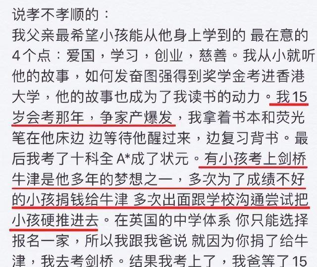 难怪何超莲同父异母的弟弟何猷君曾公开表明父亲曾想塞钱让孩子去牛津,更好笑的是,当何猷君发完文之后,何超莲立马取关何猷君,这不是妥妥的“此地无银三百两”吗?
