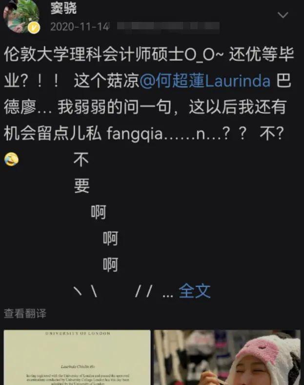 在何超莲的个人介绍上,学历那一栏可以说是洋洋洒洒写了一大堆,本科和硕士都毕业于英国伦敦大学,还都拿到了两个相关学位,这英国大学title一出来,不得不说,这学历看起来还是挺唬人的。