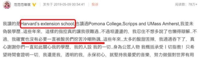 结果很快就被网友扒出,她读的根本不是真正的哈佛大学,而是哈佛大学延伸学院,几乎没一毛钱的关系,属于交个学费就可以上的大学。学历造假曝光后,范玮琪也是火速撇清关系,说是媒体给她冠上这个光环,和自己没关系。