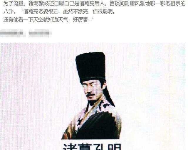 不过最让人啼笑皆非的是还有自称自己是诸葛亮后人的嫩模网红,该嫩模叫诸葛紫岐,她最大的兴趣爱好就是在社交平台上狂晒各种奢侈品,炫富就是她的日常生活。在嫁入豪门之前,她还跟媒体称自己是诸葛亮的后人,还在镜头面前对诸葛亮的妻子品头论足。