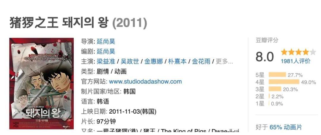 说到这样的创作初衷,也就不得不提到这部剧的最大亮点,它改编自2011年的同名动画电影——《猪猡之王》,光说这个名字大家可能不太熟悉。