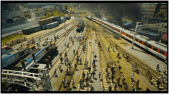 电影的故事情节很简单:病毒泄露,丧尸来袭,人们在前往釜山的火车上与丧尸对抗。