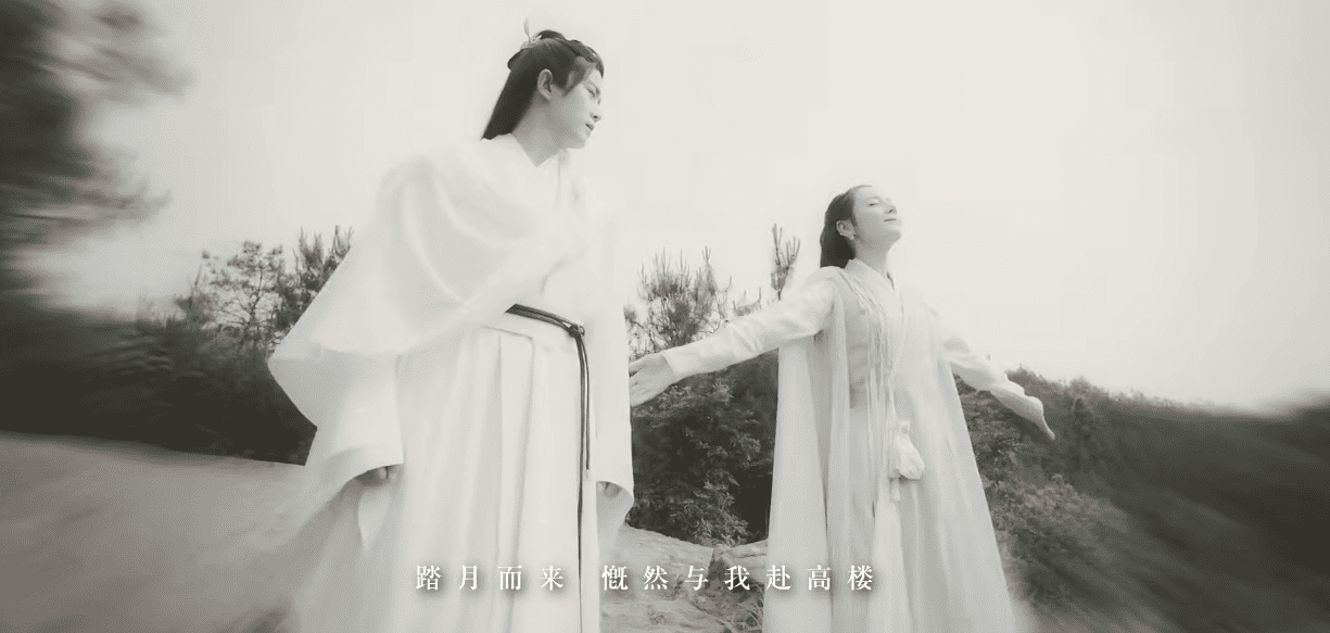 整首歌侠气纵横、音律起伏间,侠者纵情山水的豪迈之气呼之欲出,随着歌词中“踏月而来,慨然与我赴高楼”、“ 便余生同舟,一去天南与海北”等磅礴大气的歌词,长意和纪云禾踏浪而来,赵盼儿三姐妹闪亮登场,和回忆杀杀我。
