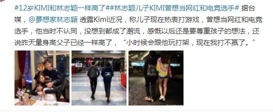 有网友找到了林志颖晒出的父子合照,不看不知道,一看吓一跳,12岁的Kimi已经突然长高了。