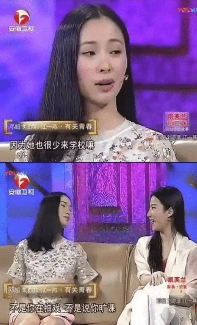 在采访节目中,江一燕一直讲刘亦菲在学校旷课的事情,口无遮拦,坐在一旁的刘亦菲甚是尴尬。