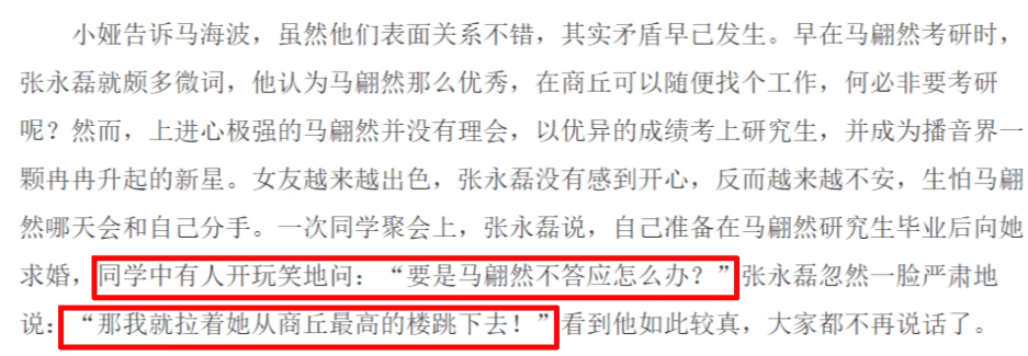 在马翩然读研期间,他表面上是对女友关爱有加,天天给马翩然打电话,实则对她产生了极大的不信任感,他要求马翩然每天都要报备行程,电话一接慢了或是没看到,就会大发脾气。