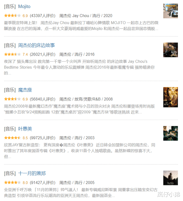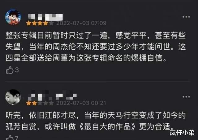 而且,此次的评分更是创造周杰伦历年来专辑的最低分,要知道,周杰伦过去发行的专辑平均分都在8.0分以上,要说最低分的《摩羯座》也有6.9分,而现在,还没有发行一上来就5.3分,甚至还有人一本正经的进行点评,也太离谱了。