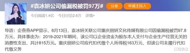 据悉,袁冰妍关联的公司理应交税163万元,但其并未履行自身义务,因此被处罚97万。比起她的前辈们漏掉的上亿的税款,袁冰妍漏的税算得上是九牛一毛,但违法就是违法,不论金额多少。