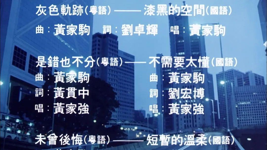 开场不久,刘德华初遇吴倩莲,插入了《灰色轨迹》,国语版《漆黑的空间》;